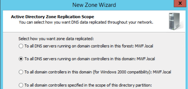 - Decide which DNS servers you want this zone to be created on. Select Next.