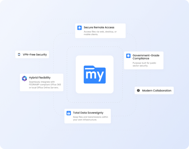 - MyWorkDrive: Files remain in place (on-prem or your cloud storage). No external databases or vendor storage required.