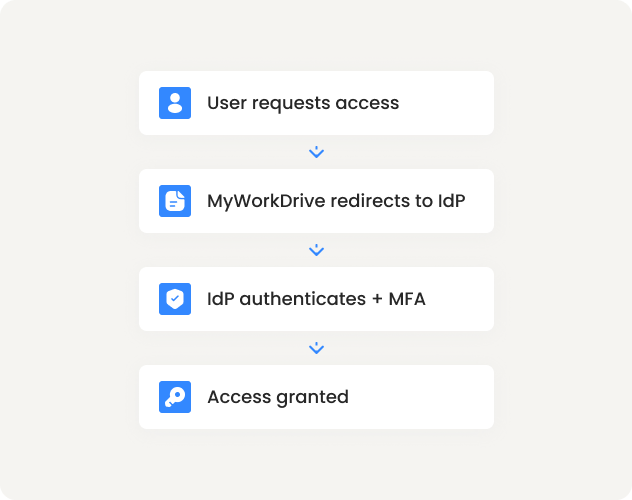 MyWorkDrive defers authentication to your identity provider. MFA and access policies stay where you already manage them.