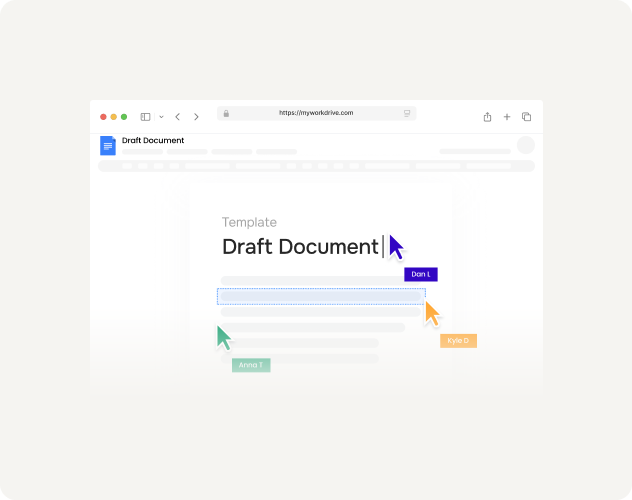 Multiple users can edit the same document simultaneously with real-time co-authoring. See each other's cursors, watch changes appear live, and reduce manual merging.